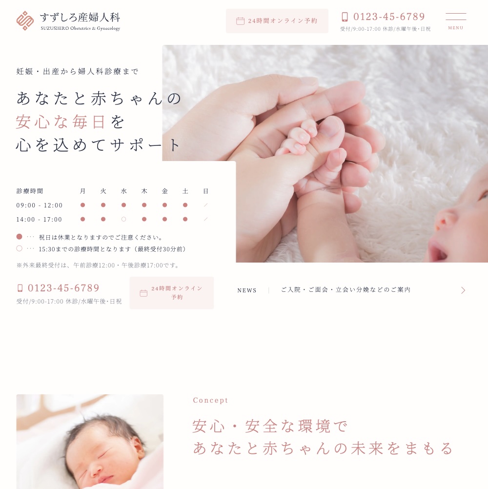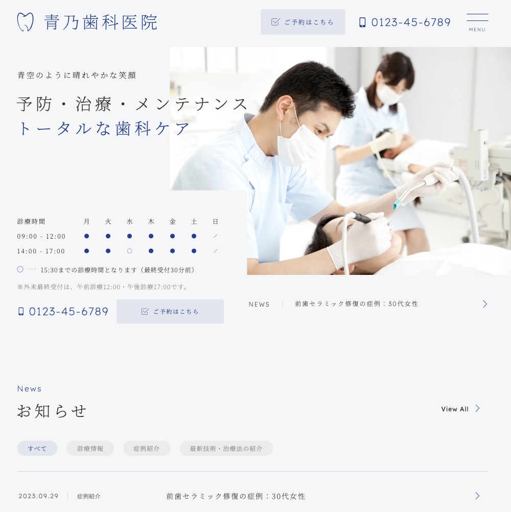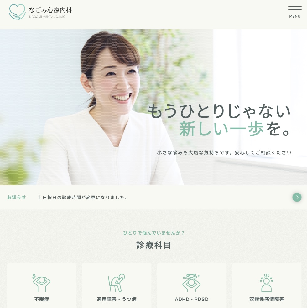 清潔感と信頼感を重視したデザインで、初めての方にも安心感を与えます。