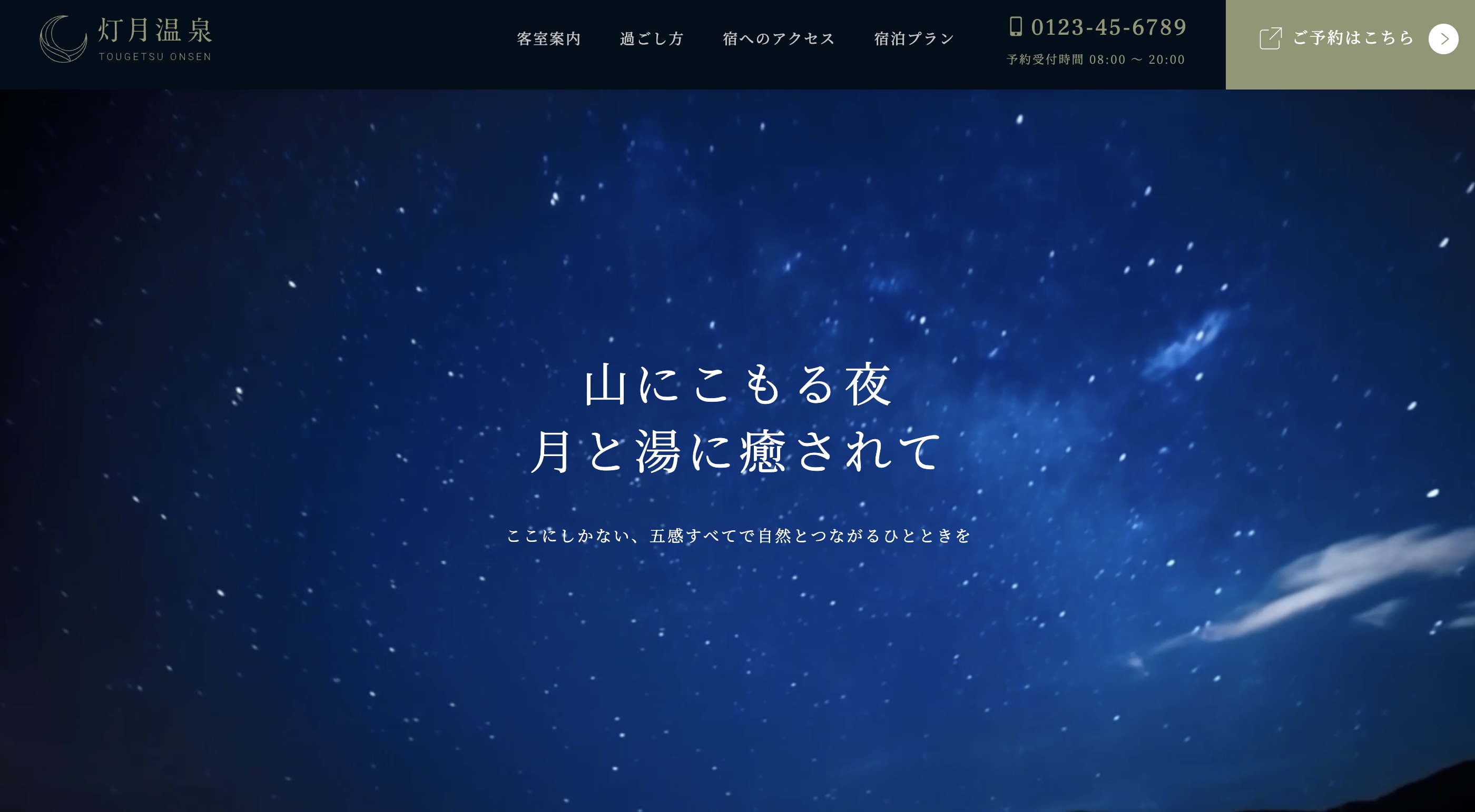 予約・お問い合わせ導線もシンプルで、宿泊施設の魅力を的確に伝えられます。