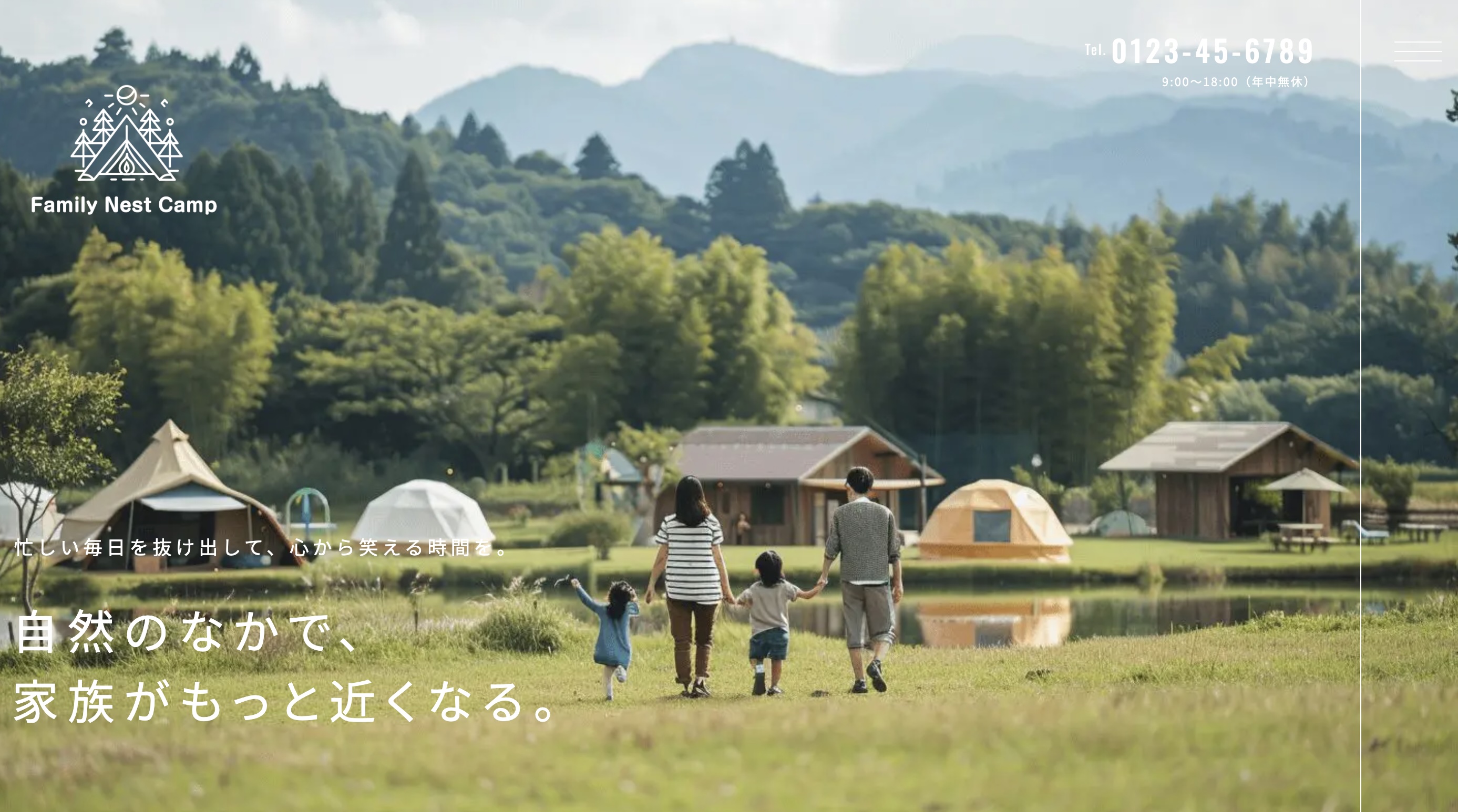 自然や冒険の魅力を伝える、アウトドアブランド・キャンプ場・体験サービス向けのテンプレートです。