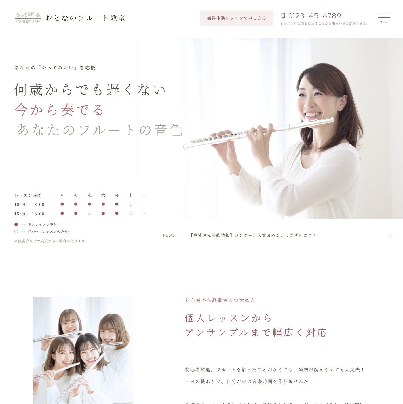 ![]() 音楽教室① | ・TOPページ ・サービスページ ・お知らせページ(一覧・詳細) ・BLOG(一覧・詳細) ・お問い合わせ ・プライバシーポリシー |